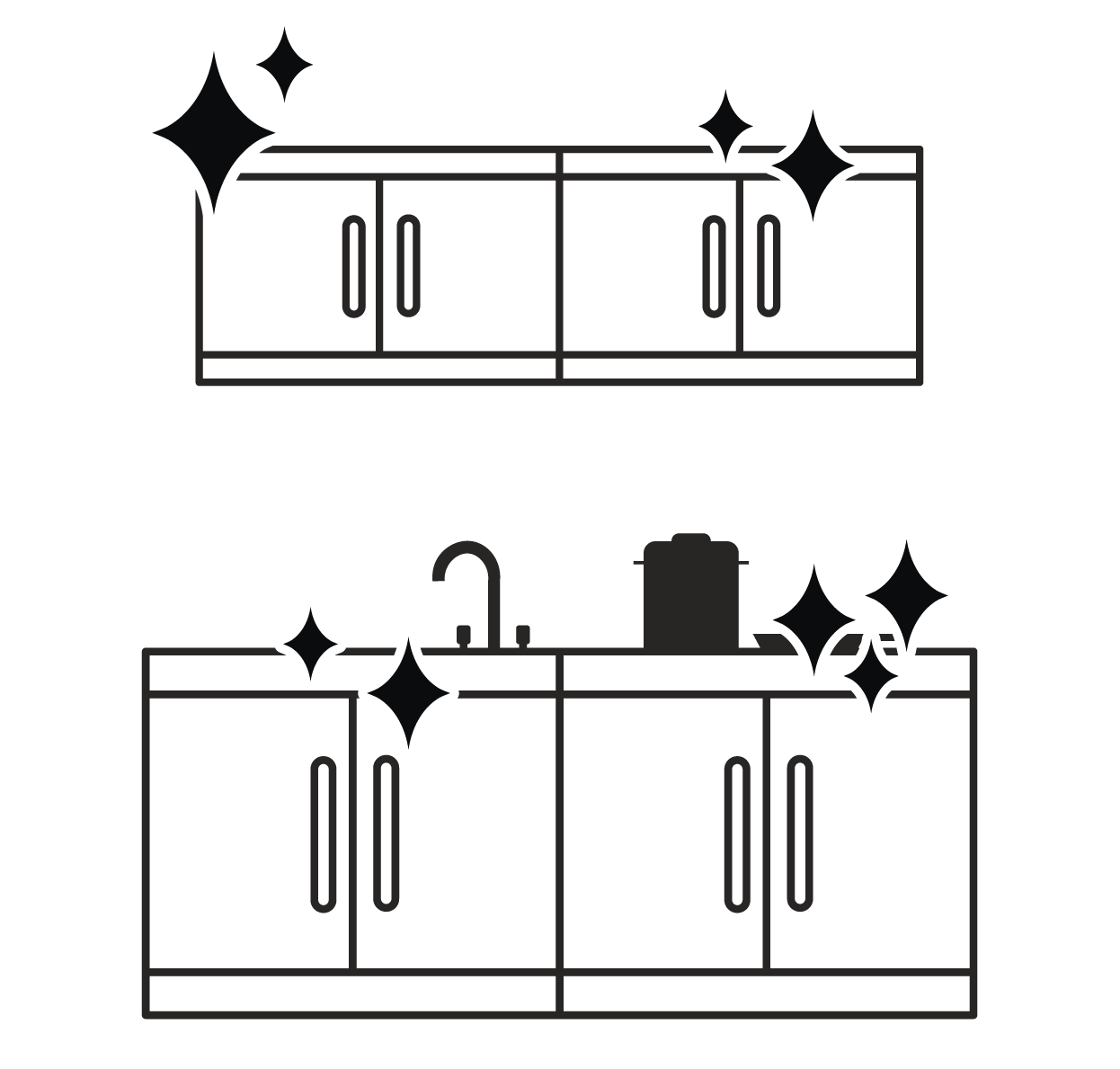 为了加强厨房的防水特性,我们采用的表层是100%不透水的